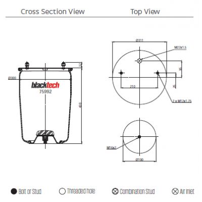 PERNA AER (FATA/SPATE) VOLVO FH12 / FH II 2012-> 6606NP01 (piston D200mm) Blacktech RML77804C
